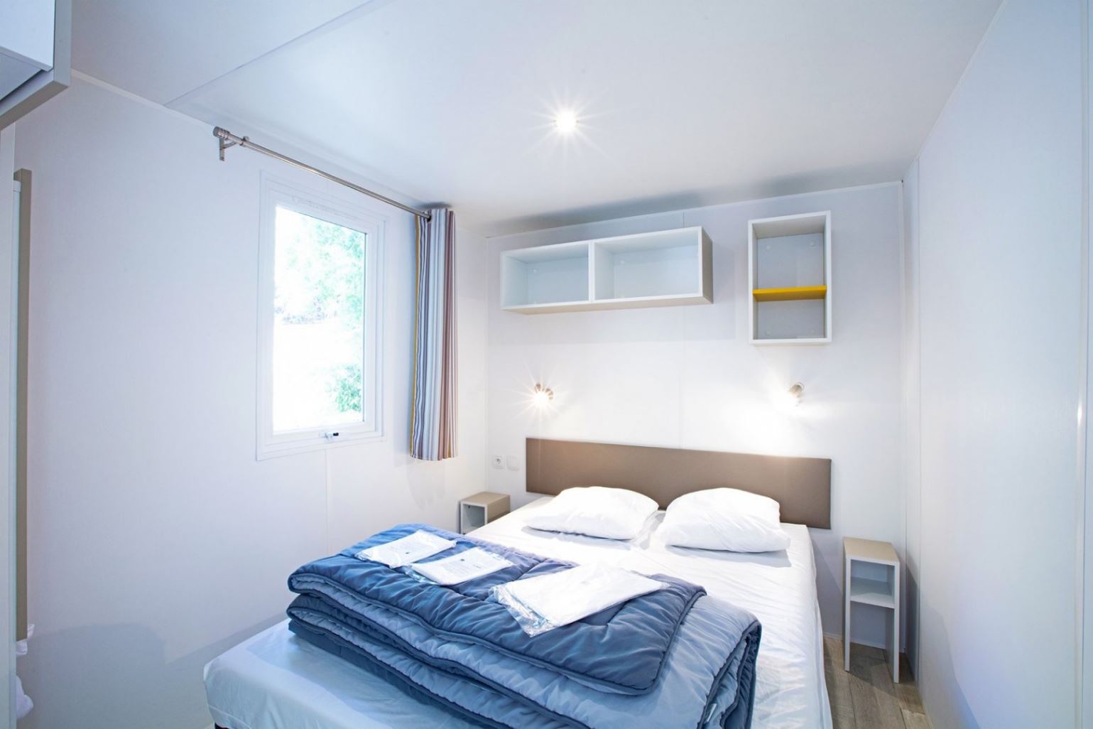 A room with one dubblebed 140 * 190 cm and one room with 2 single beds 80 * 190 cm, duvets and pillows. There is room for a baby bed in the main bedroom. A living room with a couch / bed 130 * 190 cm rather recommended for children. Electric heating. Fully equipped kitchen: hob, sink, fridge, microwave, coffee machine, kettle and crockery.