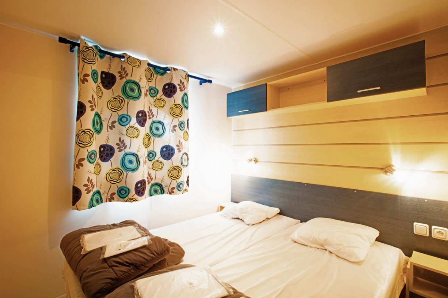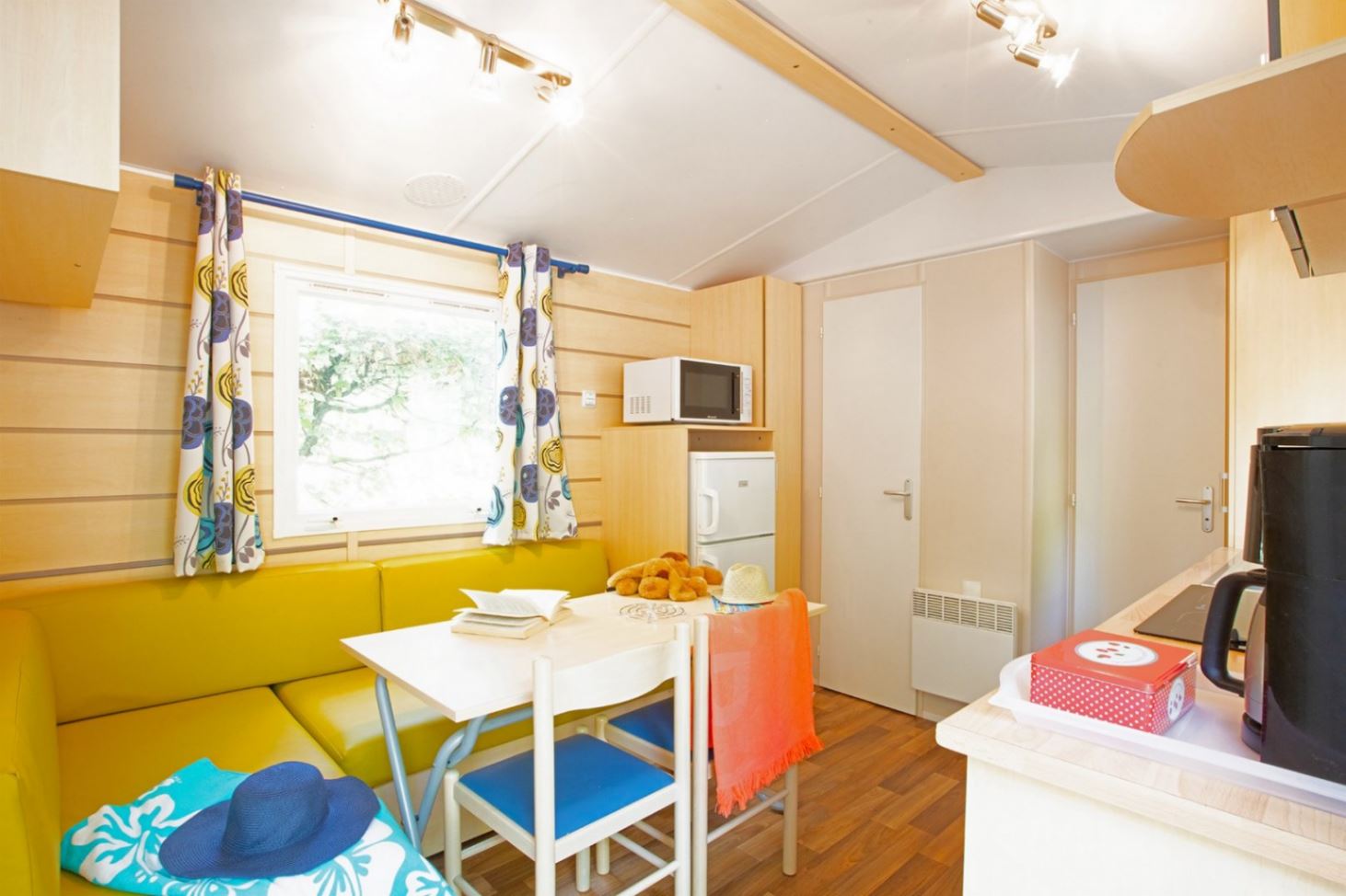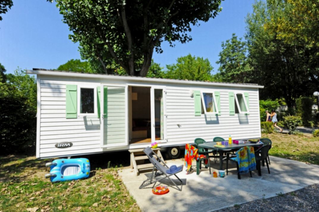 kettle and crockery. A bathroom: shower, sink. Separate toilet. Table, garden chairs and umbrella. Our mobile homes are non-smoking. Dog accepted